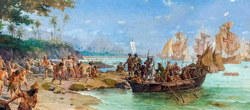 Os portugueses não vieram com a intenção de trocar, mas de conquistar. Isso, aliás, era típico daquele momento histórico europeu. Na arrancada da “Era das Navegações”, os reinos nascentes queriam acumular riquezas comprando e vendendo especiarias, abrindo rotas de comércio e conquistando os territórios de potenciais fornecedores. Tudo com o suporte da fé religiosa.